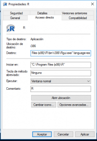Habitualmente R detecta adecuadamente el idioma que usa el sistema donde se ejecuta y, si existe traducción a ese idioma, usa el idioma detectado. Si la detección automática falla, o por cualquier otro motivo, se desea cambiar el idioma que usa R se puede hacer como se indica a continuación.